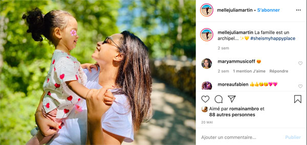 Julia Martin pose avec sa petite fille sur instagram / Capture écran